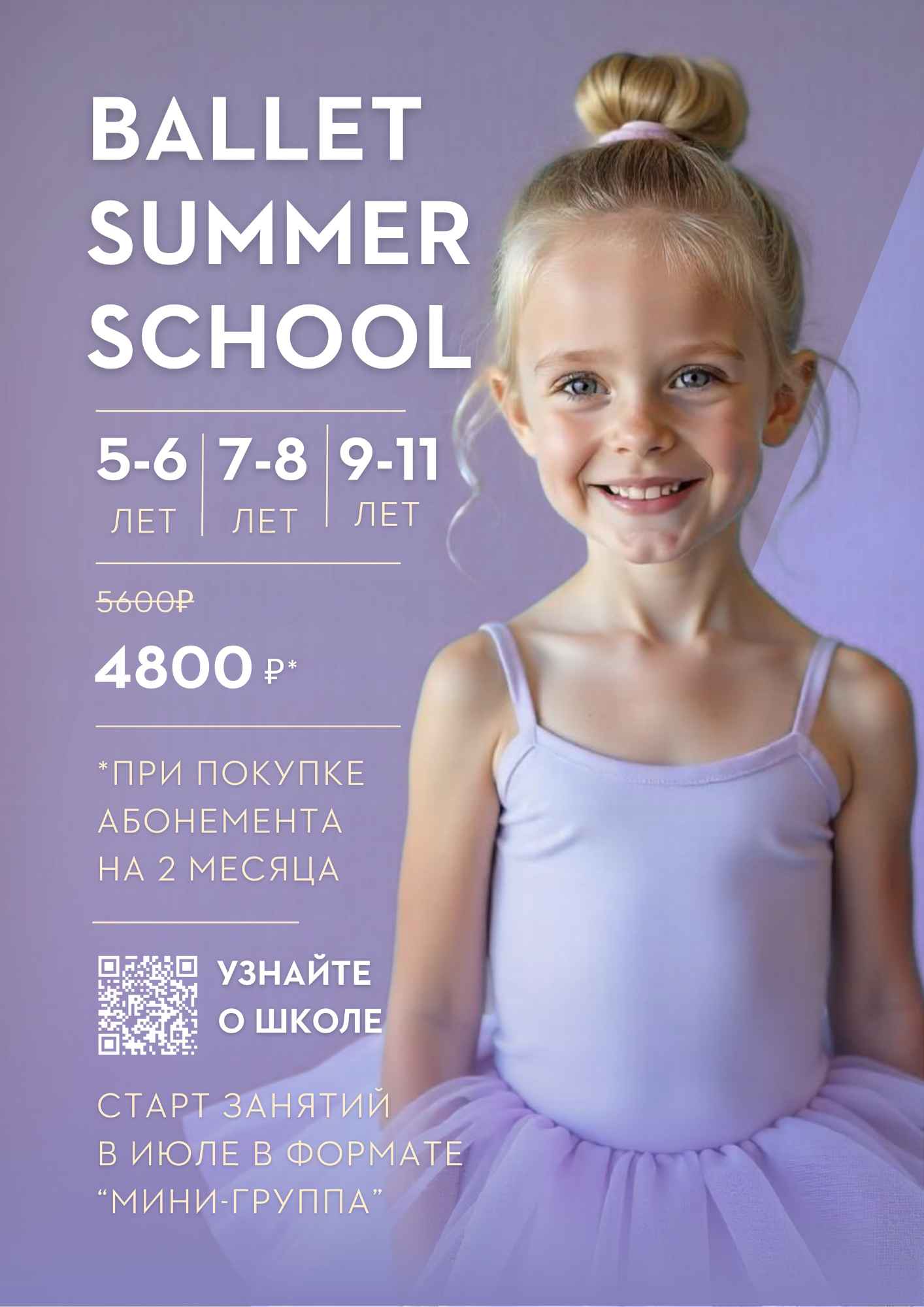 Только два дня (07 и 08 июля) абонемент "Лето" можно приобрести по специальной цене (скидка 1600Р). Количество мест ограничено. Хотите записаться? Оставьте заявку на сайте школы балета, наш администратор свяжется с вами.